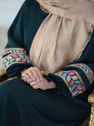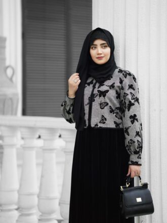 عبای طاووس . رش A و نیمه‌فون برای کشیده‌تر و لاغرتر دیده شدن . جنس: ندا قطری اعلا . ویژگی
